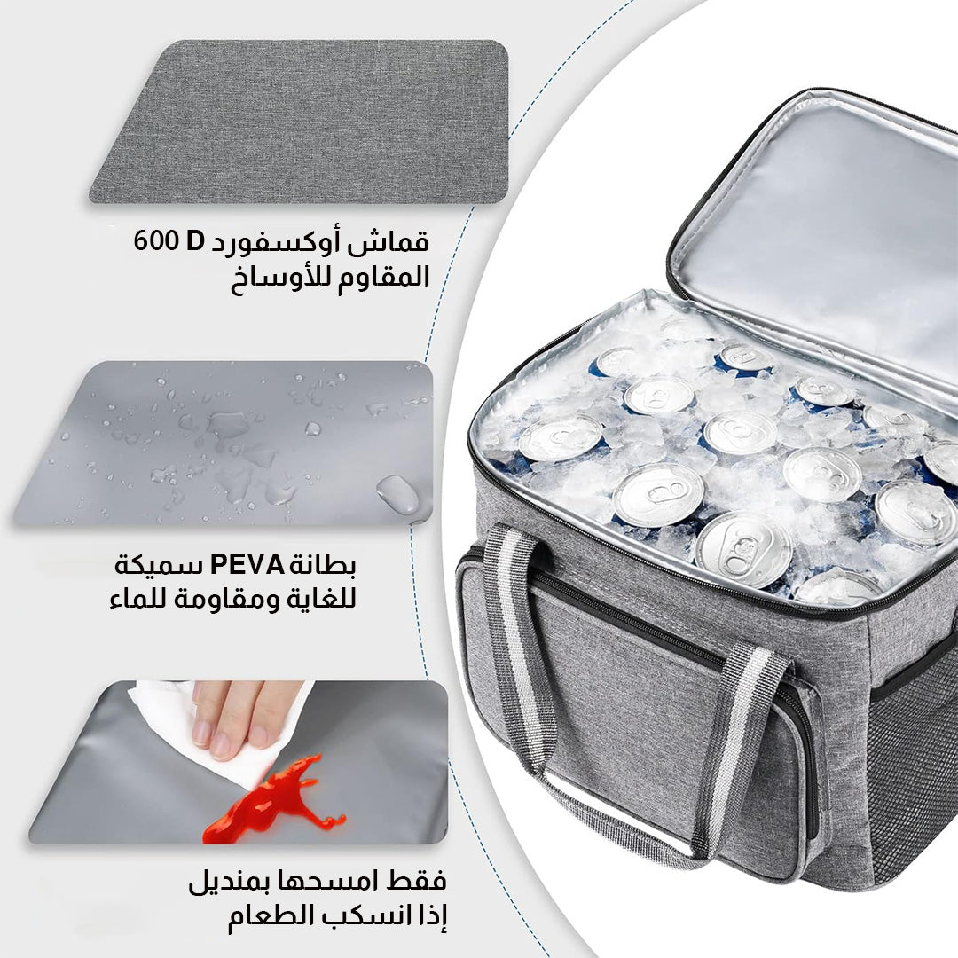 إذا كنت تبحث عن حقيبة غداء عملية، واسعة وأنيقة، فهذه الحقيبة بسعة 15 لتر هي أفضل اختيار لك تحافظ على طعامك طازجاً لساعات! تصميم أنيق، مقاومة للتسرب، وسهلة التنظيف. مثالية للعمل، الجامعة، الرحلات والسفر. احملها باليد أو على الكتف