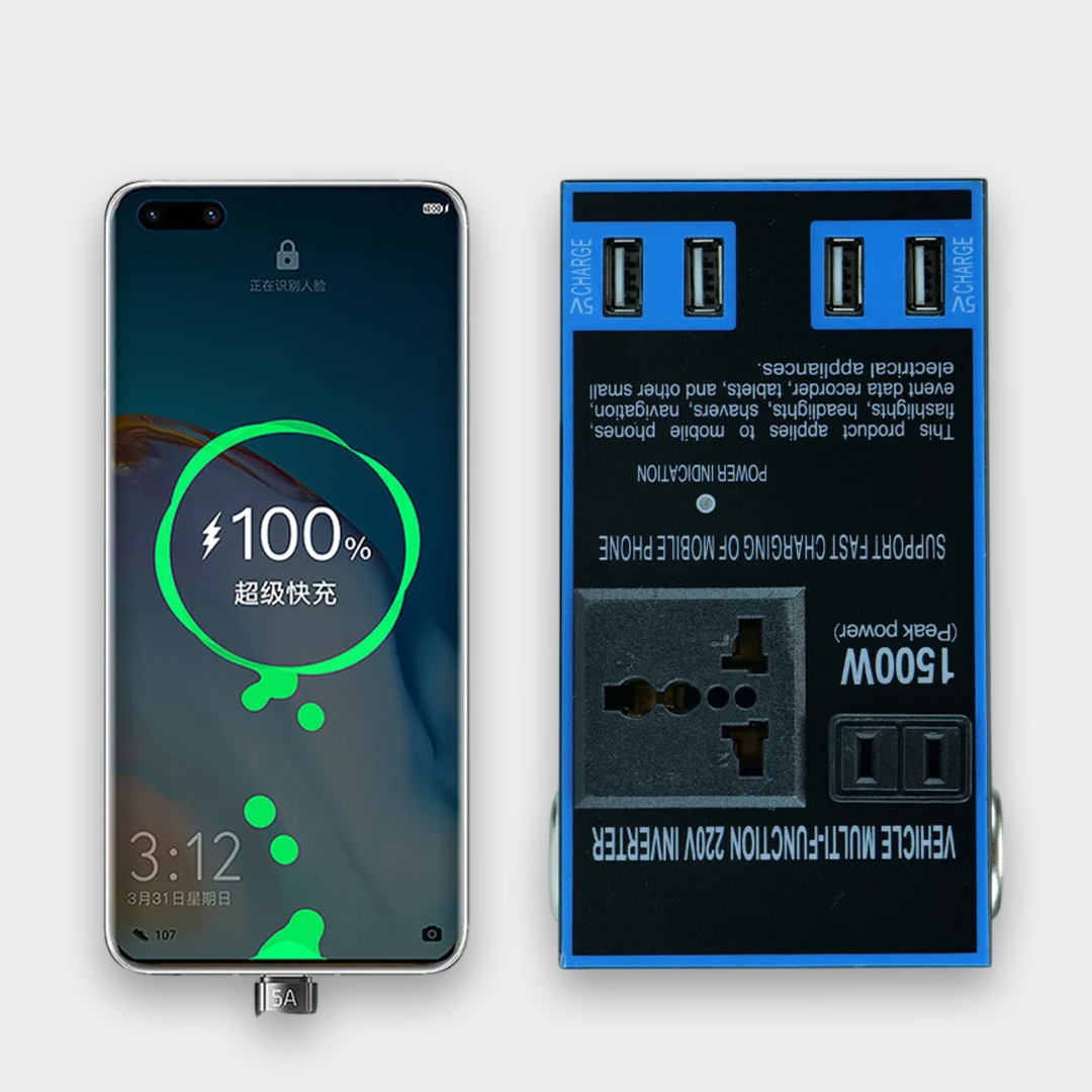 مع محول طاقة السيارة الذكي، يمكنك تشغيل أجهزتك الإلكترونية بأمان أثناء السفر أو الرحلات. ببساطة، قم بتوصيله بمقبس ولاعة سيارتك أو البطارية، وسيحوّل تيار 12V DC إلى 220V AC مستقر لتشغيل الهواتف، اللابتوب، والكاميرات وغيرها. صغير الحجم، قوي وموثوق، يجعل سيارتك محطة طاقة متنقلة في أي وقت.